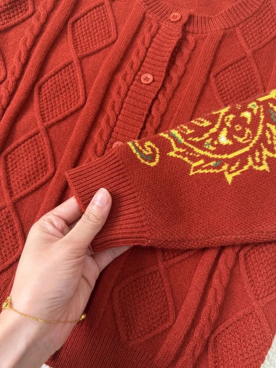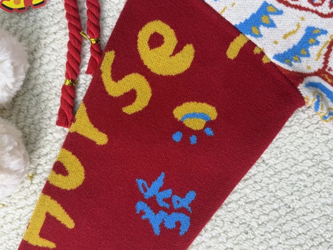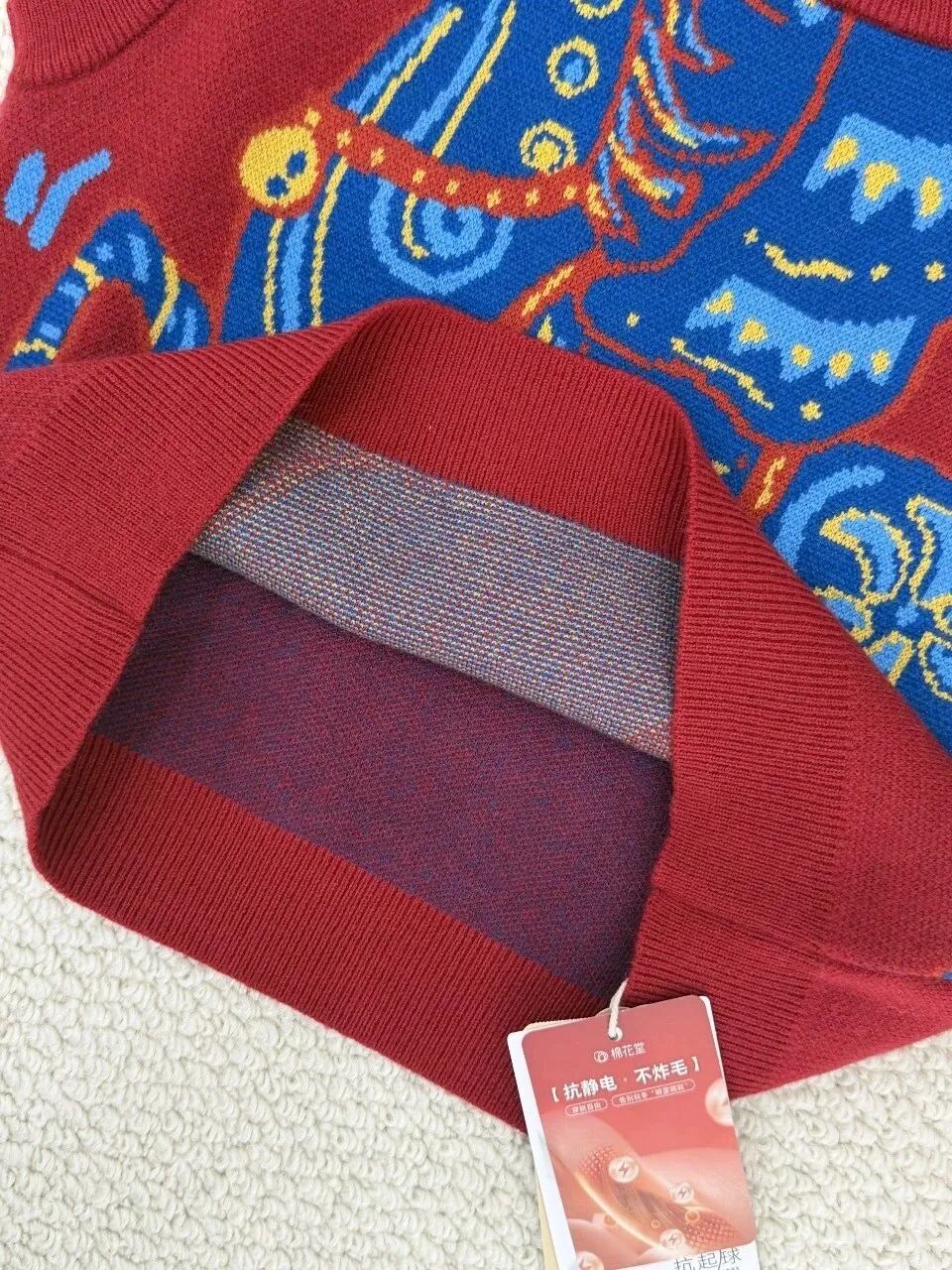 白红相间的底色,整件衣服上都是福马彩印,新年氛围感满满,穿出去也不容易撞衫。