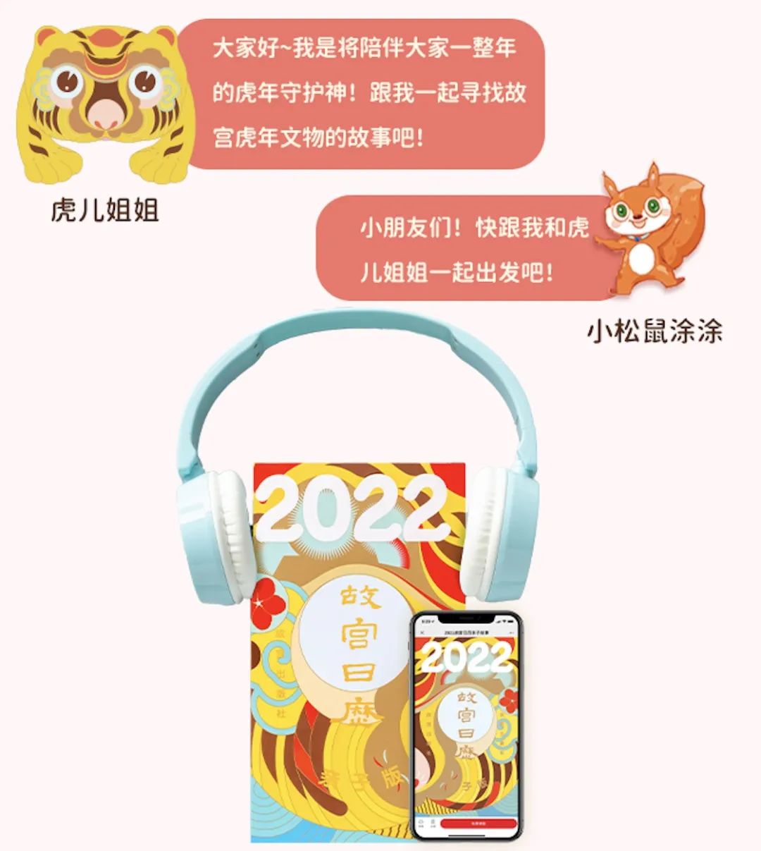 除了AR互动,《故宫日历(亲子版)》贴心地配套了25集趣味文物音频故事,由深受十万家庭喜爱的《你好呀!故宫》研发团队原创制作。孩子们可以睡前听、起床听,路上听,跟着虎儿姐姐和涂涂一起穿越到故宫,找寻藏在故宫里的虎年文物。