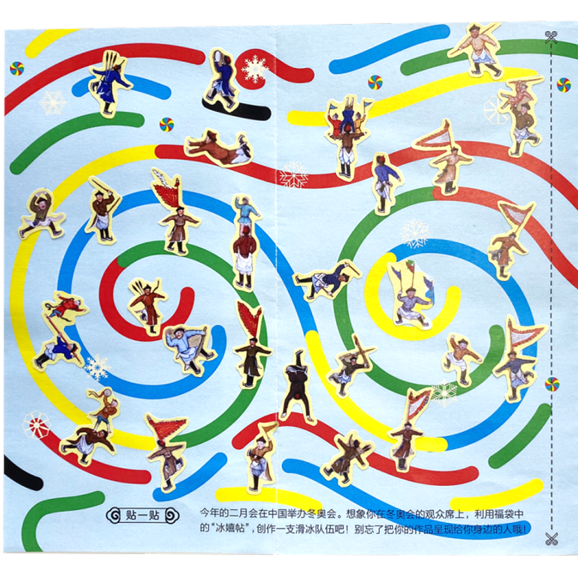 比如说,在即将到来的二月,北京将迎来冬季奥运会啦!在故宫亲子日历里,孩子们不仅可以了解清代的“冬奥会”——冰嬉,还可以在互动拉页的五彩赛道上“排兵布阵”,感知体育之美!一幅小小的画作,既让孩子学习了文物知识,也让孩子对国家事、身边事有了更强的参与感~