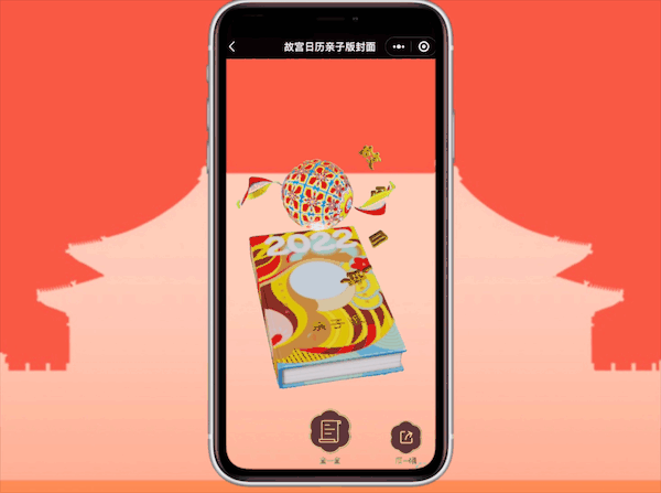 第一个AR彩蛋就在封面上!拿到日历后,扫描封面内侧的二维码,可爱的3D卡通人物“萌虎一家”就会跃过绣球一个个跳出来,跟你打招呼呐!想知道它们说了什么吗?一定要购买故宫亲子历体验一下哦~