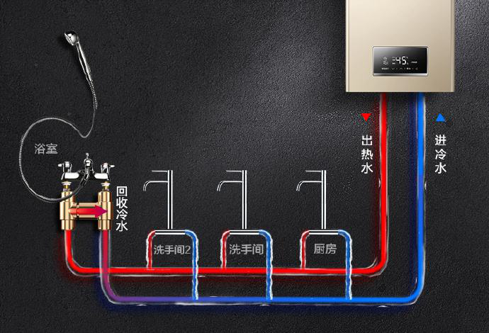 第一,热水巡航一圈将前端冷水推回,不浪费水资源,原来每次等待热水而浪费掉的冷水,一年量加起来可是一个可怕的数字;