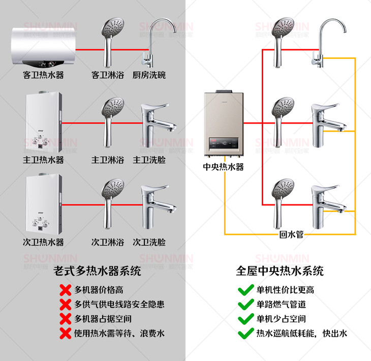 房子没有回水管,也能用中央热水器