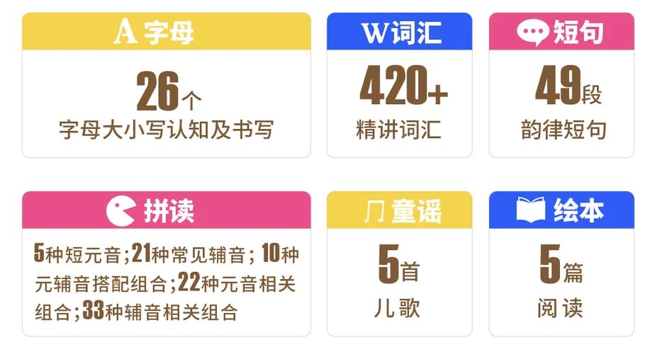 它通过让孩子辨识字母及字母组合的发音规律,在字母与发音之间建立直接联系,做到"见词能读、听音能写"。
