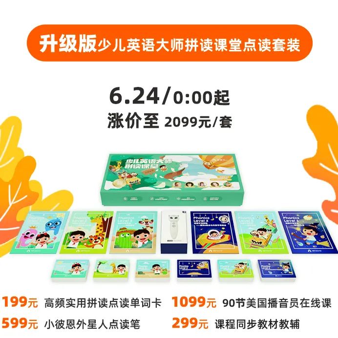 孩子在学习完26个英文字母以及字母组合的常用发音后,就能准确拼读80%以上的单词。