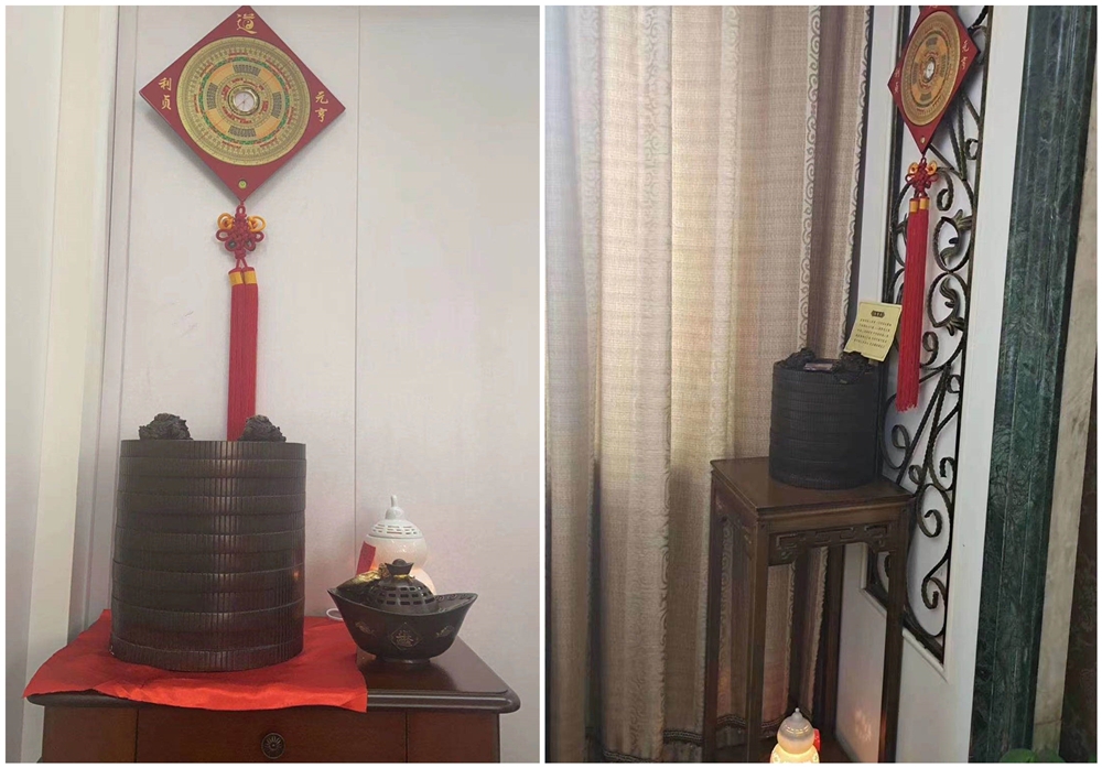 端午节的午时,请日晒大、小罗盘后,悬挂大罗盘在客厅内镇宅。