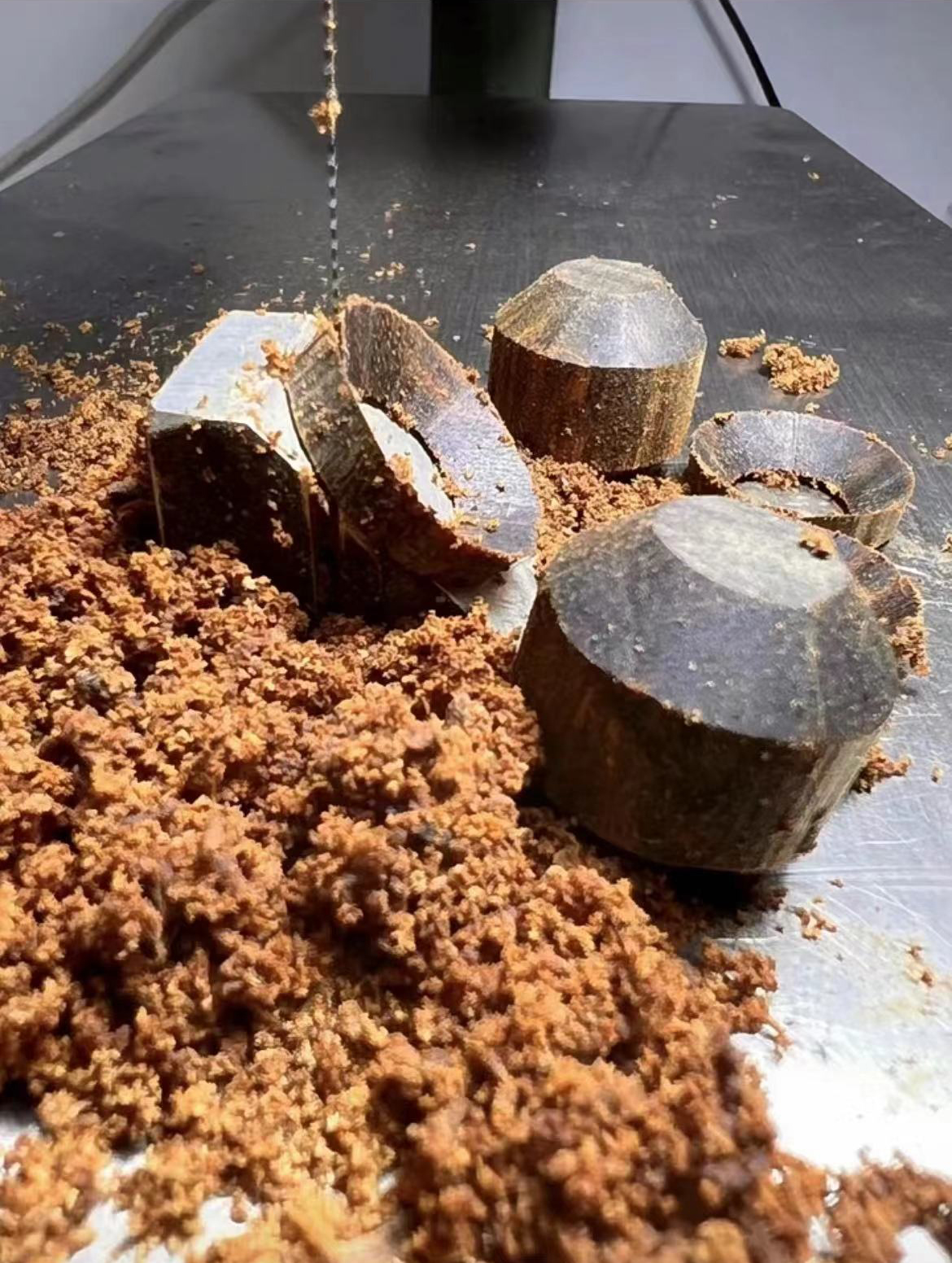 如果把普通沉香是木,奇楠就是蜂胶。如果加以外力,可知其质软而性糯,刀刮之碎屑能捻捏成丸。