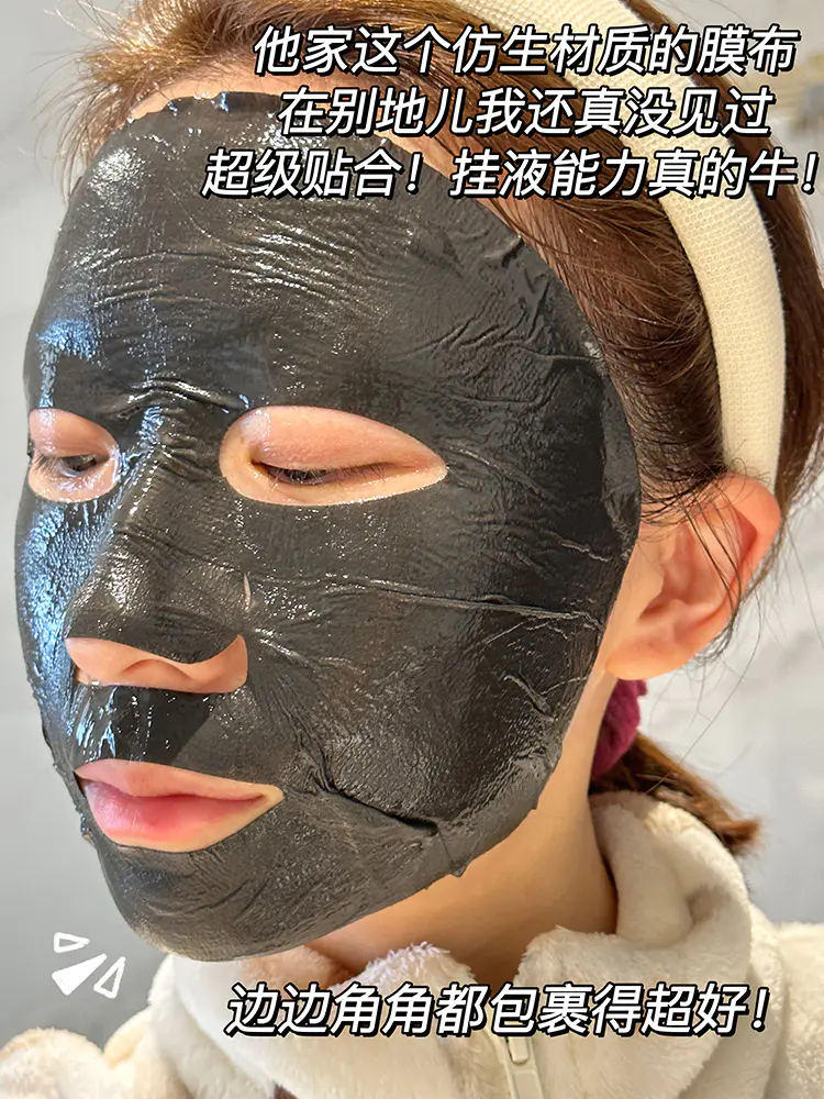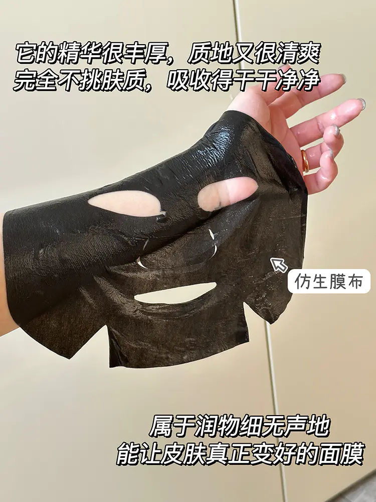 仿生材质的膜布摸起来又糯又软,蛮能挂住精华的!