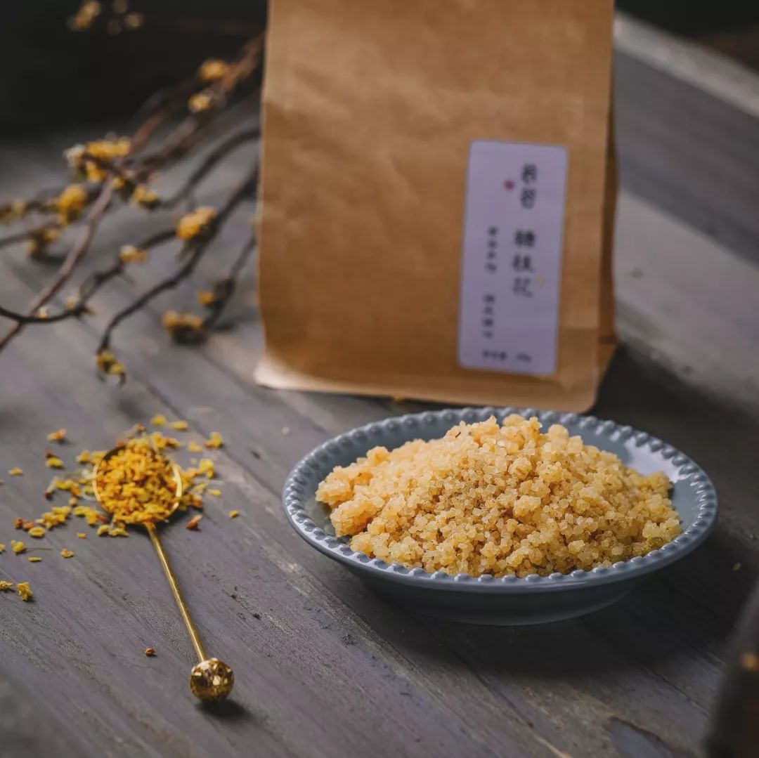 市面上看到的糖桂花,很多是广西出的。一层糖一层花,这是广西做法,很容易融化,更接近桂花酱。而且用玻璃瓶装,很快就二次污染,并不是杭州老式的糖桂花。