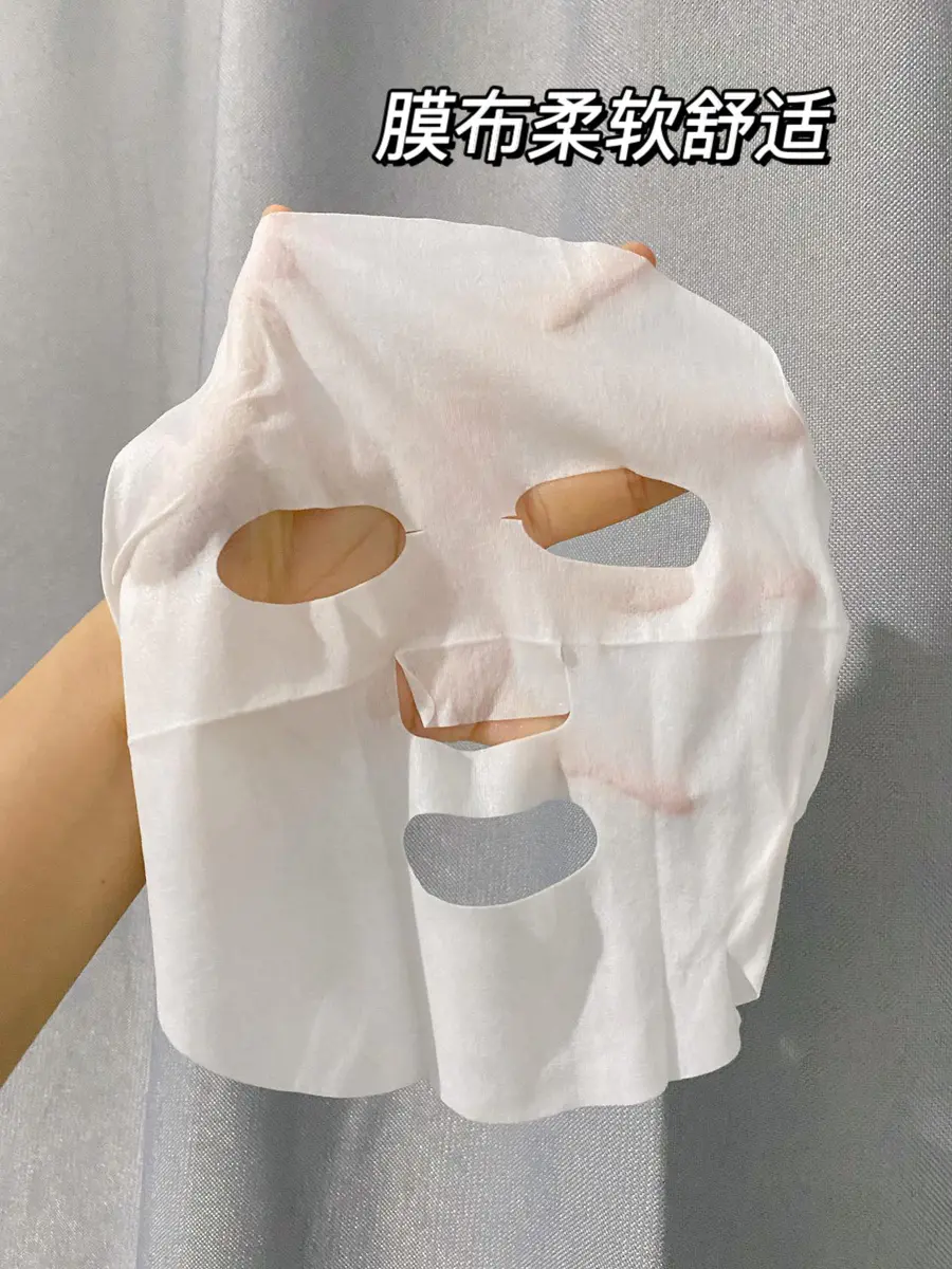 上脸真的很舒服,膜布很薄很服帖,质感也好,在脸上冰冰凉凉的,都能感觉肌肤在喝水一样,而且很温和,精华液流到眼角也不会被刺激到~