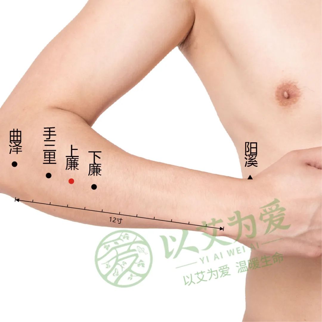 曲池穴位于肘横纹外侧端,屈肘,当尺泽与肱骨外上髁连线中点。它是大肠经的合穴,是管理人体汗液以及汗腺出现异常进行修复的穴位。