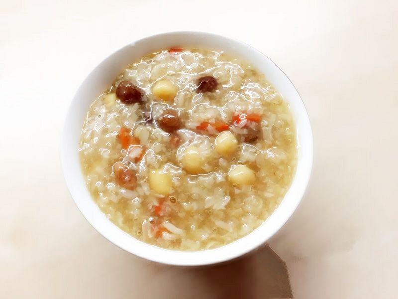 3. 调至煮粥功能两小时,水要多放一些,离煮好还剩20分钟的时候放入枸杞,煮好后调入适量红糖即可