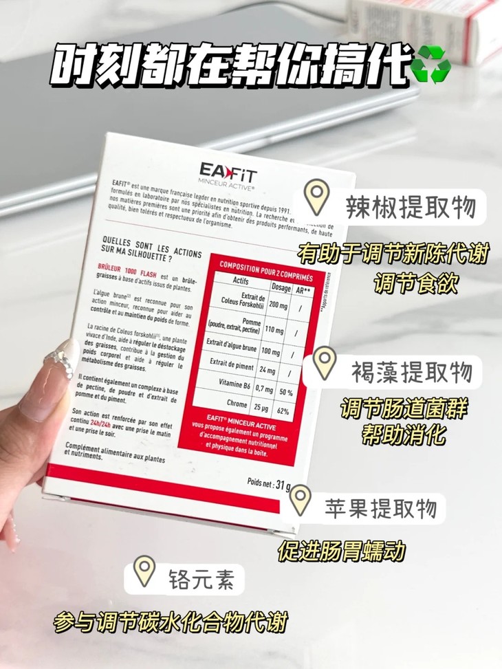 👉辣椒提取物、褐藻提取物、毛喉鞘蕊提取物、苹果提取物、铬元素