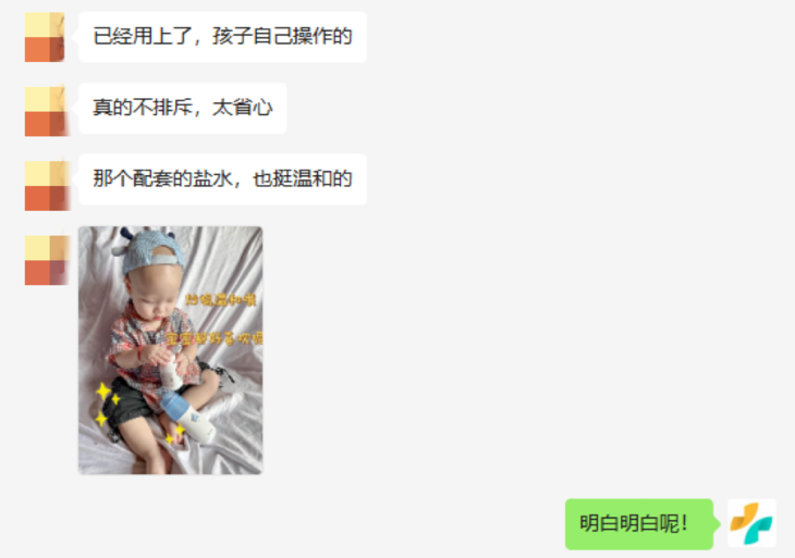 所以没了那种呛水感后,娃在用它洗鼻时便不会产生抗拒心理,甚至还会主动配合,这对父母来说太舒心了。