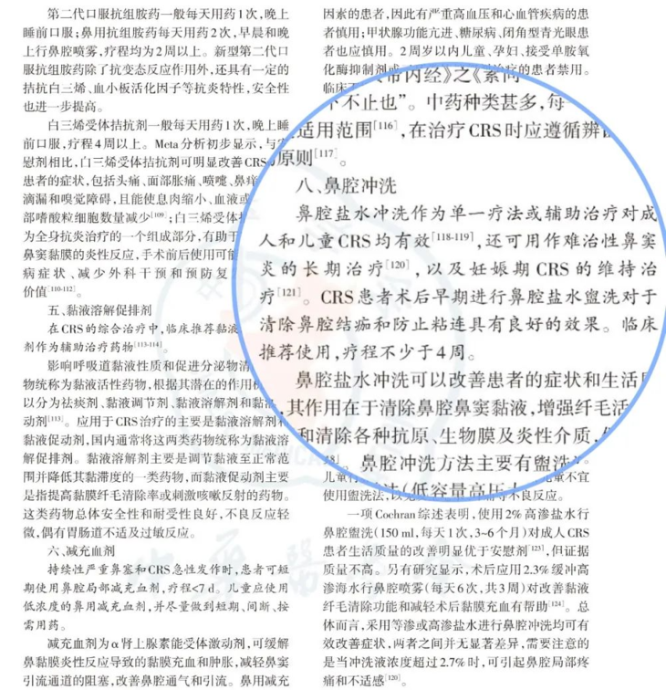 在最新的《中国应变性鼻炎诊断和治疗指南(2022版)》中明确提到鼻腔盐水冲洗是一种安全、方便、廉价的治疗手段,且无不良反应。