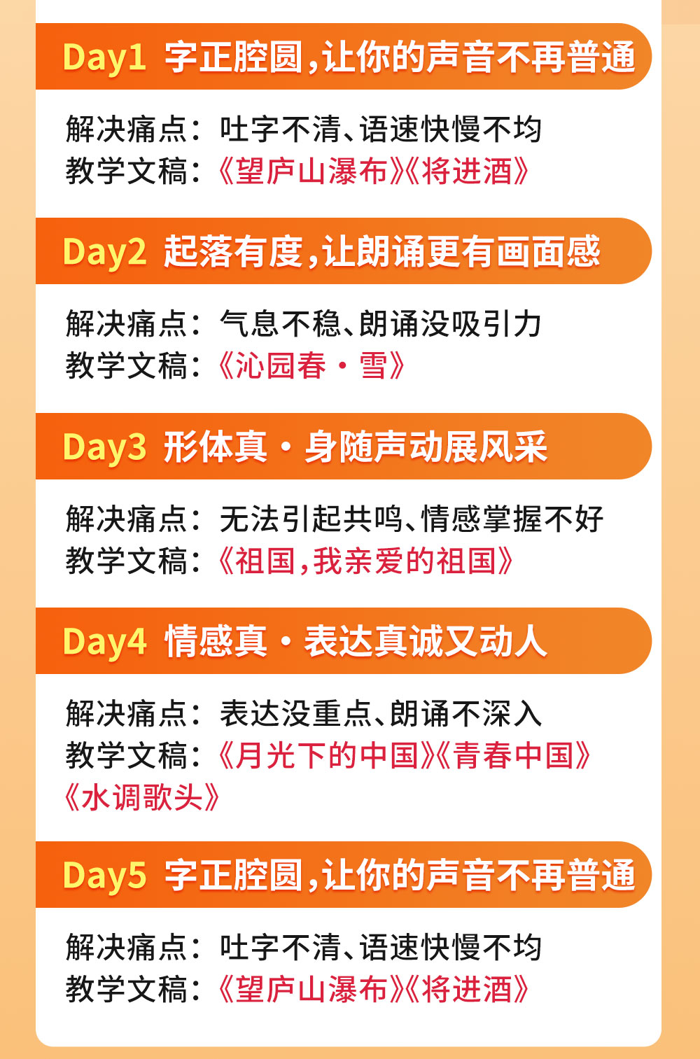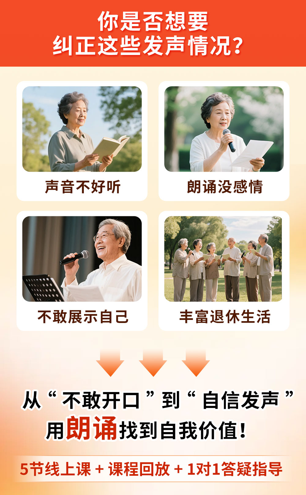没方向。每次自己朗诵诗词散文总是不动听 没经验。想学习朗诵文,却不知如何下手 没人带。想和志同道合的人一起交流朗诵却找不到人 没机会。参加朗诵比赛却找不到门路的人 声音爱好者。想让自己的声音朗诵更好听更专业