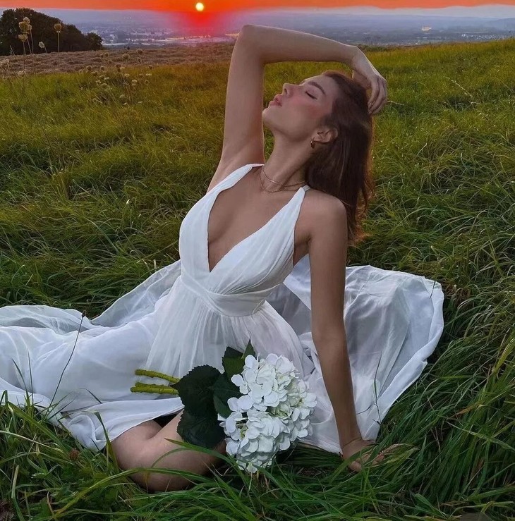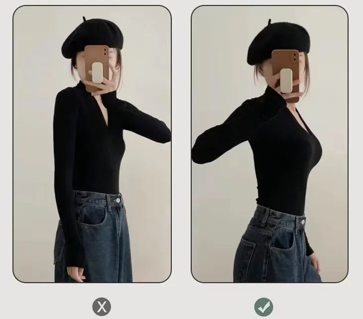 恰到好处的深v领加上防走光设计,不仅不会走光还将锁骨很好的展现出来露出一点小性感~