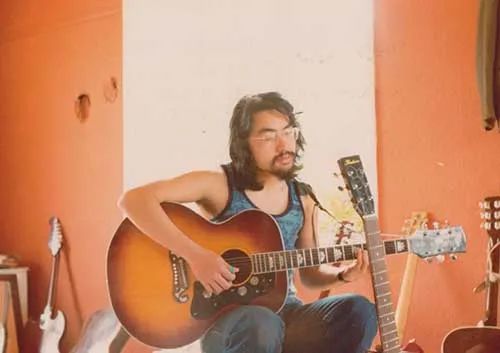 1977年弹吉他的石黑一雄,图片来源:诺奖官网。