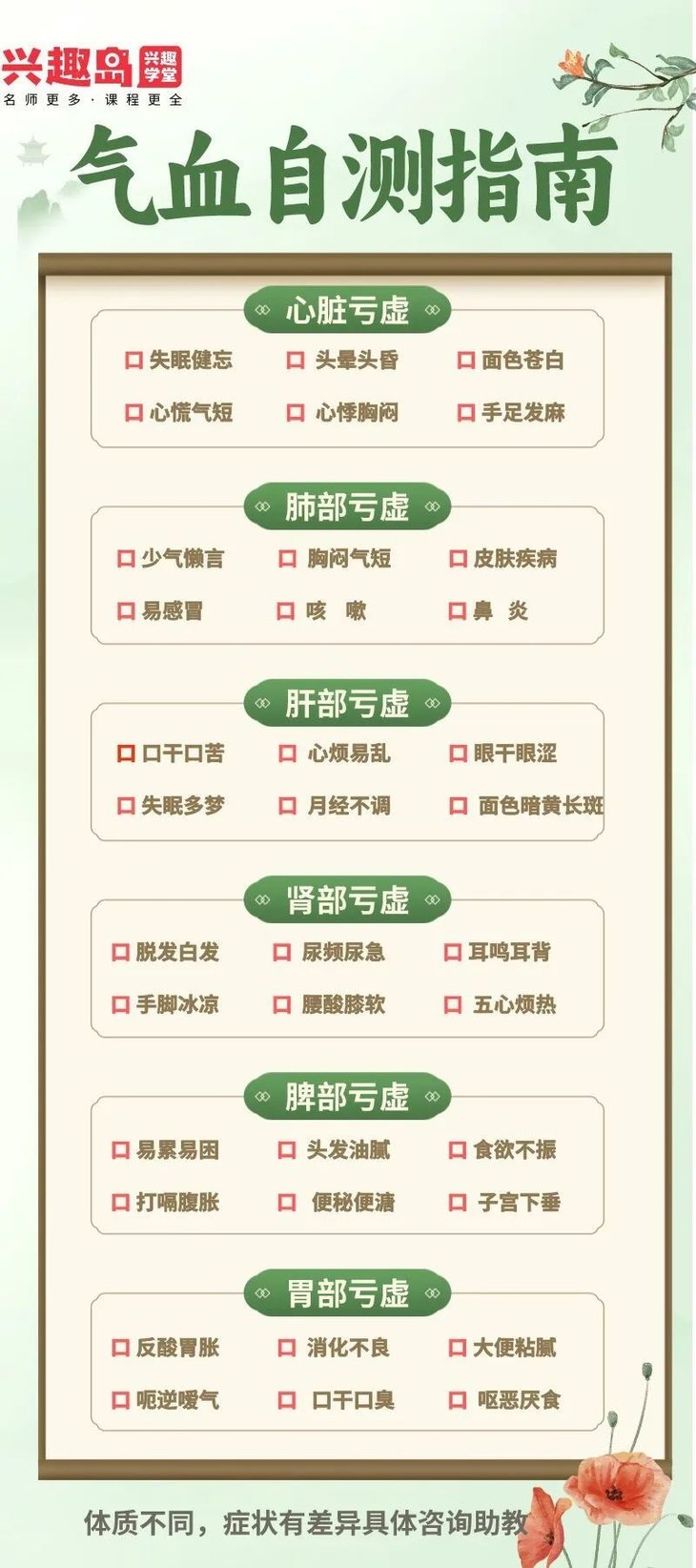 气血自测表+健康日报
