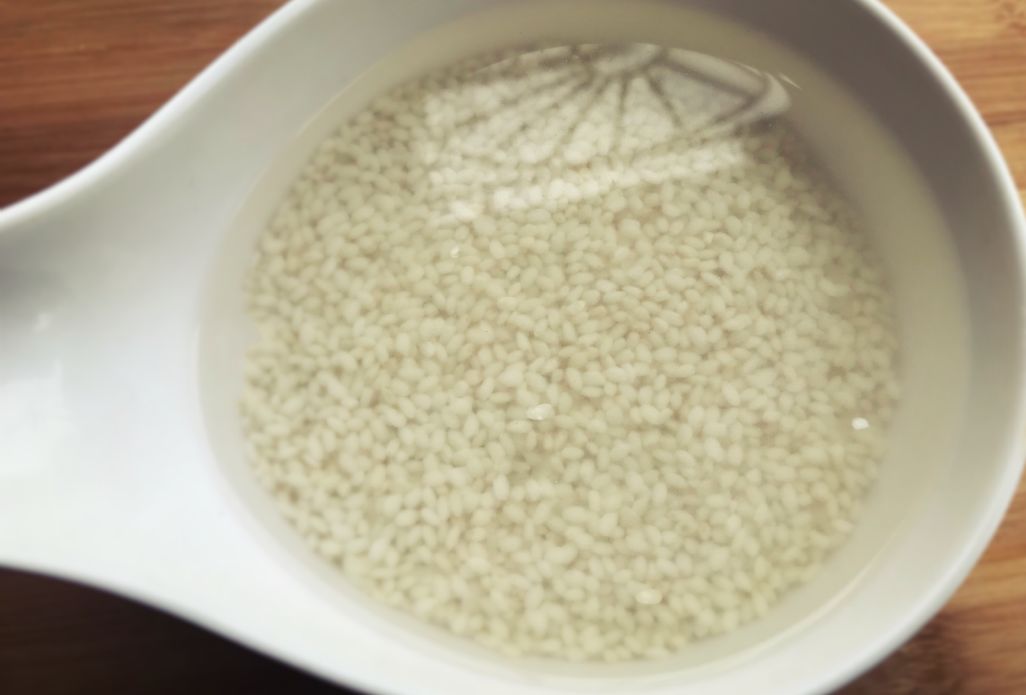 1、将糯米放入清水中浸泡1个小时后沥干水分备用;
