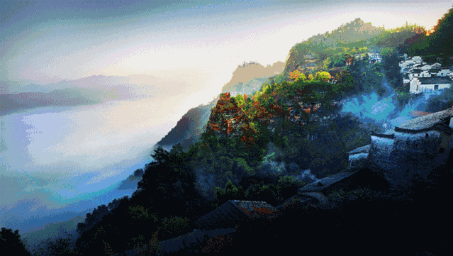 轻雾弥漫,远山笼烟,清脆的鸟鸣