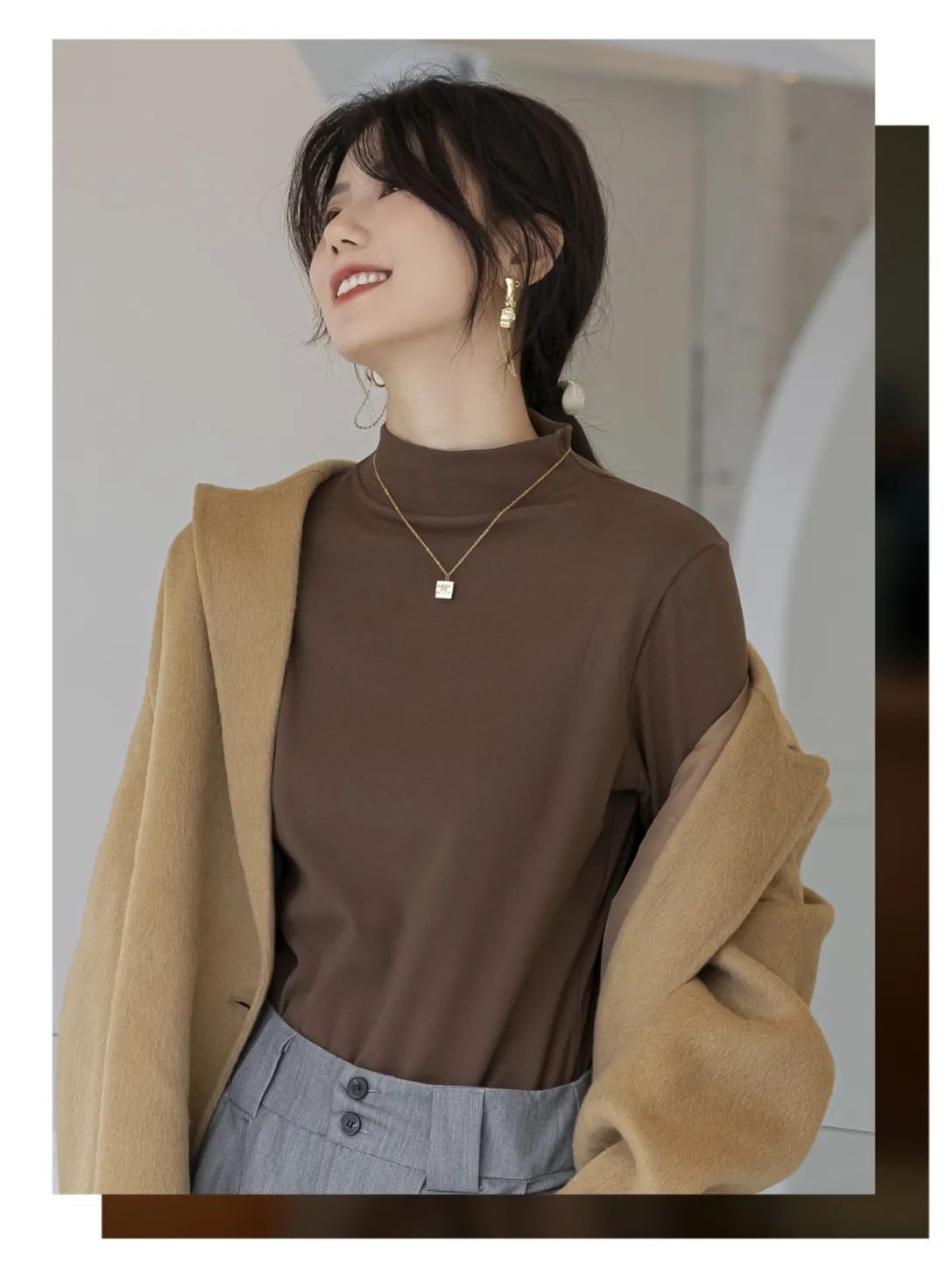 它半高领高度大小都刚刚好,能拉长颈部线条显得整个人很有气质!