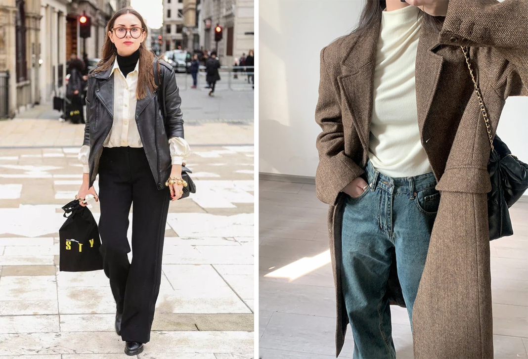 天更冷一些的时候外搭不同的皮衣、大衣、外套,看起来简约中又透漏着不一般的高级感。