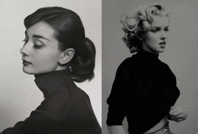 50年代时,赫本、玛丽莲梦露就尤其钟爱半高领打底衫,随便一搭矜贵又优雅,经典到现在。