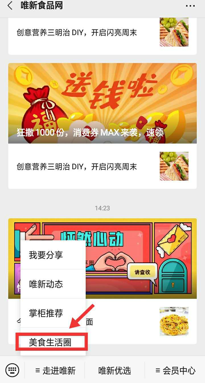 关注公众号【唯新食品网】,点击底部左侧菜单栏【走进唯新】,点击【美食生活圈】
