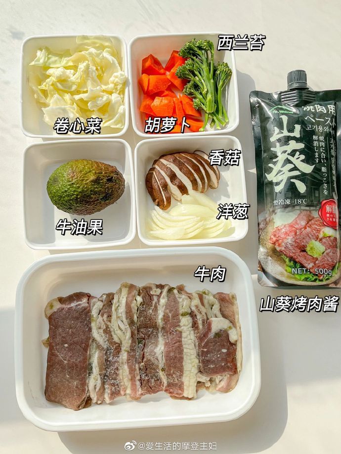 1.牛排肉加山葵勺肉酱、葱花、盐、姜末,腌制20分钟