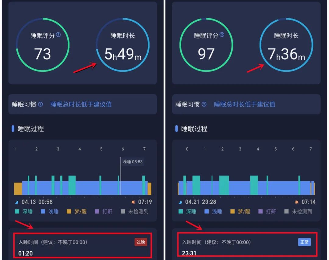 △睡眠软件显示:食用后睡眠质量分数明显增多