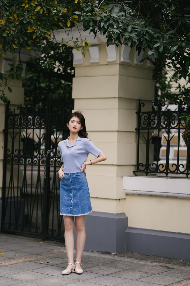 牛仔短裙是减龄半裙!穿上即刻少女感满满~中高腰A字版型半开扣的设计,完美的修饰腿型,显高又显瘦!经典又百搭~复古的湖蓝水洗色,清爽又不失气质!是春天那条充满活力的半裙了~