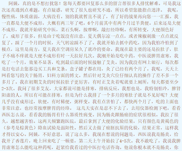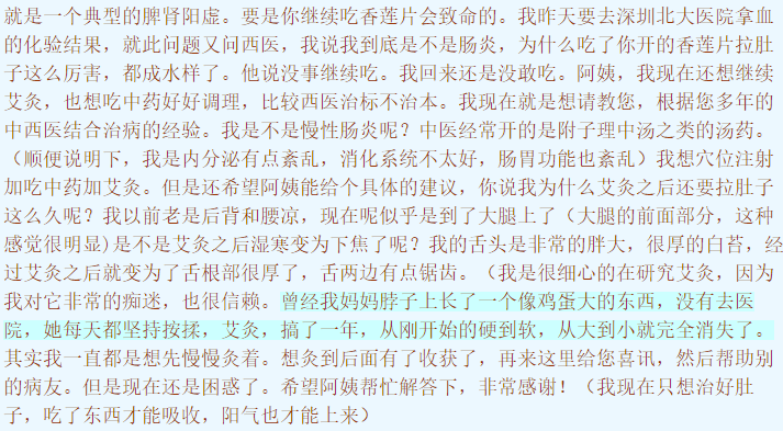你已经看到了艾灸的疗效,在检查的过程中,其实是因为你一直在艾灸,所以并没有检查出来什么疾病?说明你的肠道在艾灸的濡养下,恢复的还算不错。若不然一定会检查出来肠道的疾病。
