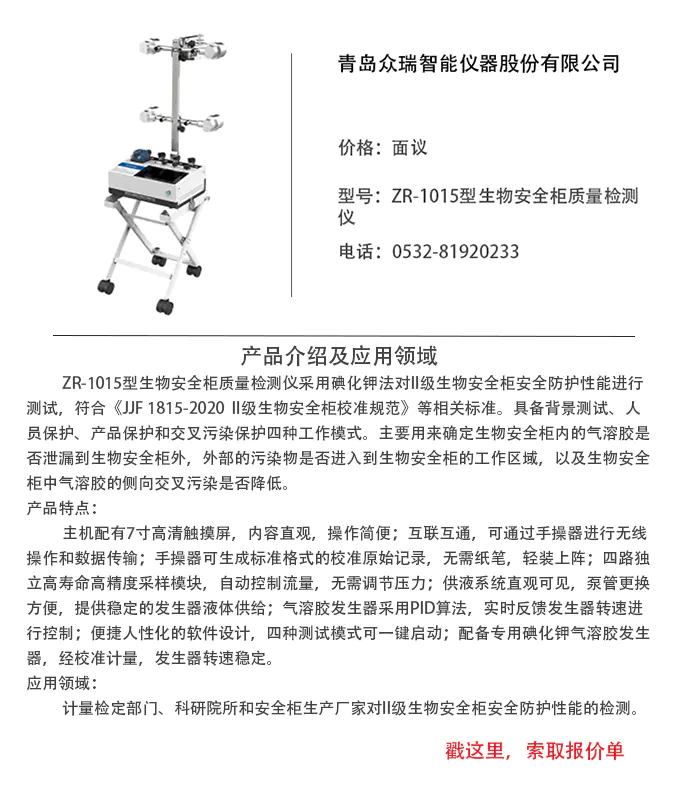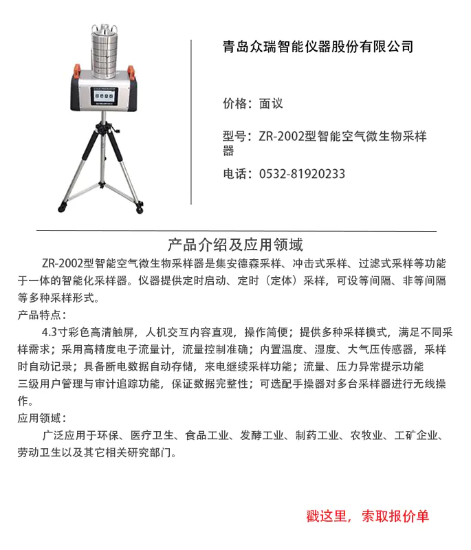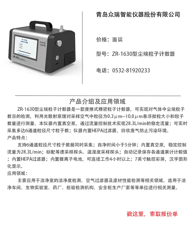 青岛众瑞智能仪器股份有限公司成立于2007年,专注于便携式环境监测仪器、洁净室检测评价、生物安全、计量溯源等检测仪器的研发与应用。十几年来众瑞聚焦核心科技、深耕细作,申获200余项国家专利,获评国家级高新技术企业、国家级专精特新小巨人企业、山东省瞪羚企业、科学仪器售后服务五佳企业、校企合办青岛市博士后创新实践基地。产品荣获中国工业设计红星奖、山东省科学技术进步一等奖、山东省名牌等称号。在全国设有28个办事处,致力于为环保、科研院所、检测机构、疾控药企等单位提供更专业的产品和更周到的服务。
