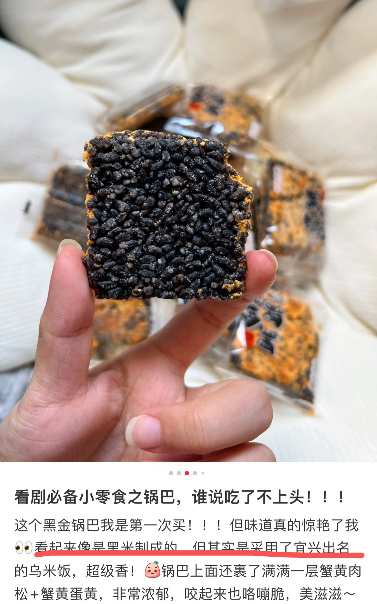 裹满蟹黄肉松/蟹香蛋黄的黑金锅巴😍