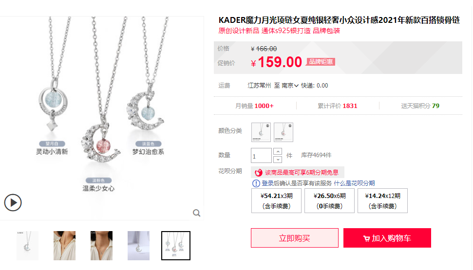 超火的KADER月光项链,天猫销量超10000+,月销量也一直保持1000+,所以,它到底有多火,大家现在应该了解了吧!