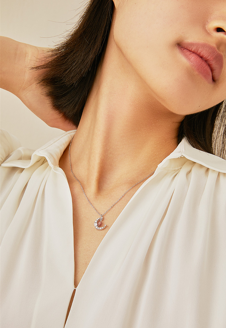 KADER月光项链,精致月亮锁骨链,搭配漂亮的草莓晶,瞬间治愈你的焦虑情绪!而且,草莓晶还有招桃花,助力人际关系,情感关系的作用哦!