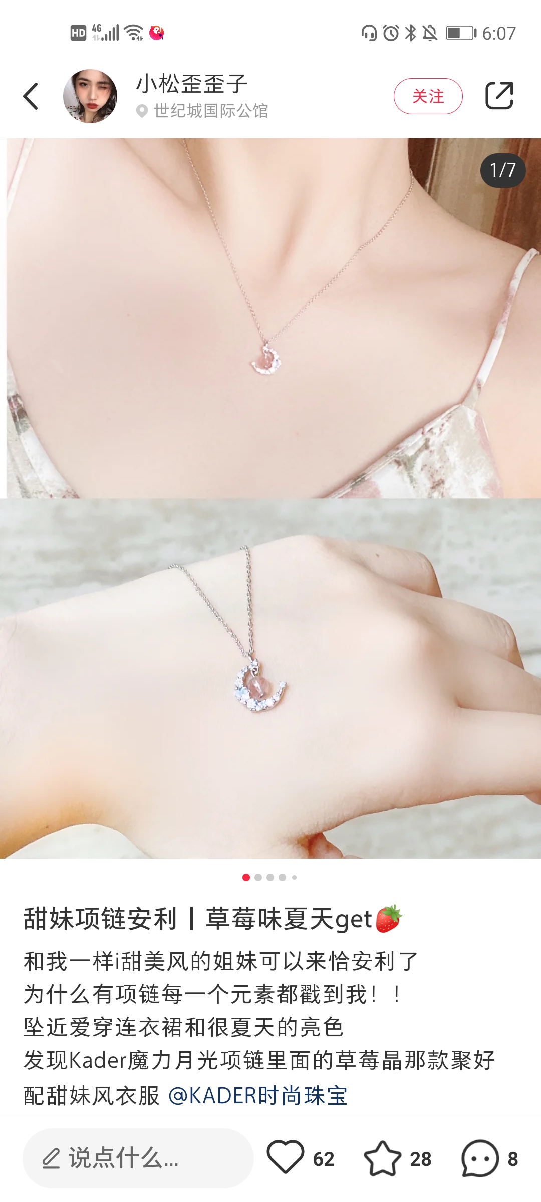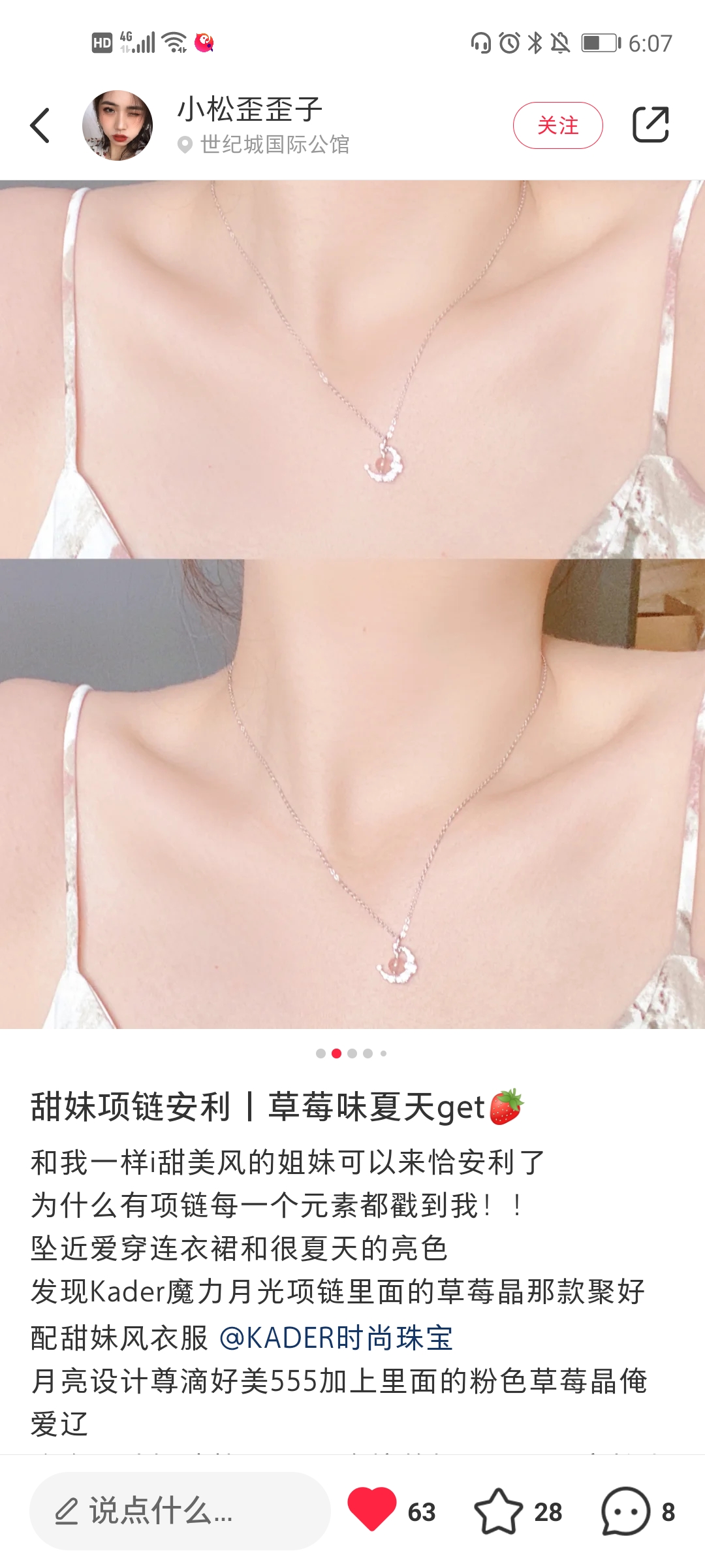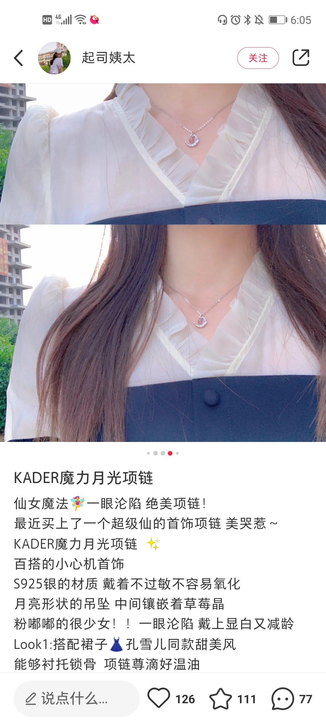 另外,这款也是小红书超多人气博主力推的锁骨链。甜罗们还可以到小红书APP搜索“KADER月光项链”查看,里面有超多好看的买家秀供大家欣赏!