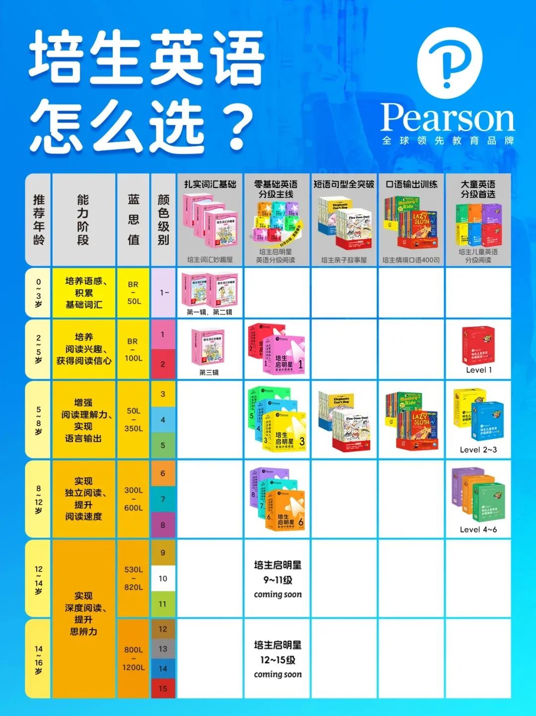 从孩子学前轻松启蒙一直到初高中直达流利,培生启明星系列可以说是一套不管娃走原版路线or课内路线,都能通用的系统英语分级主线~