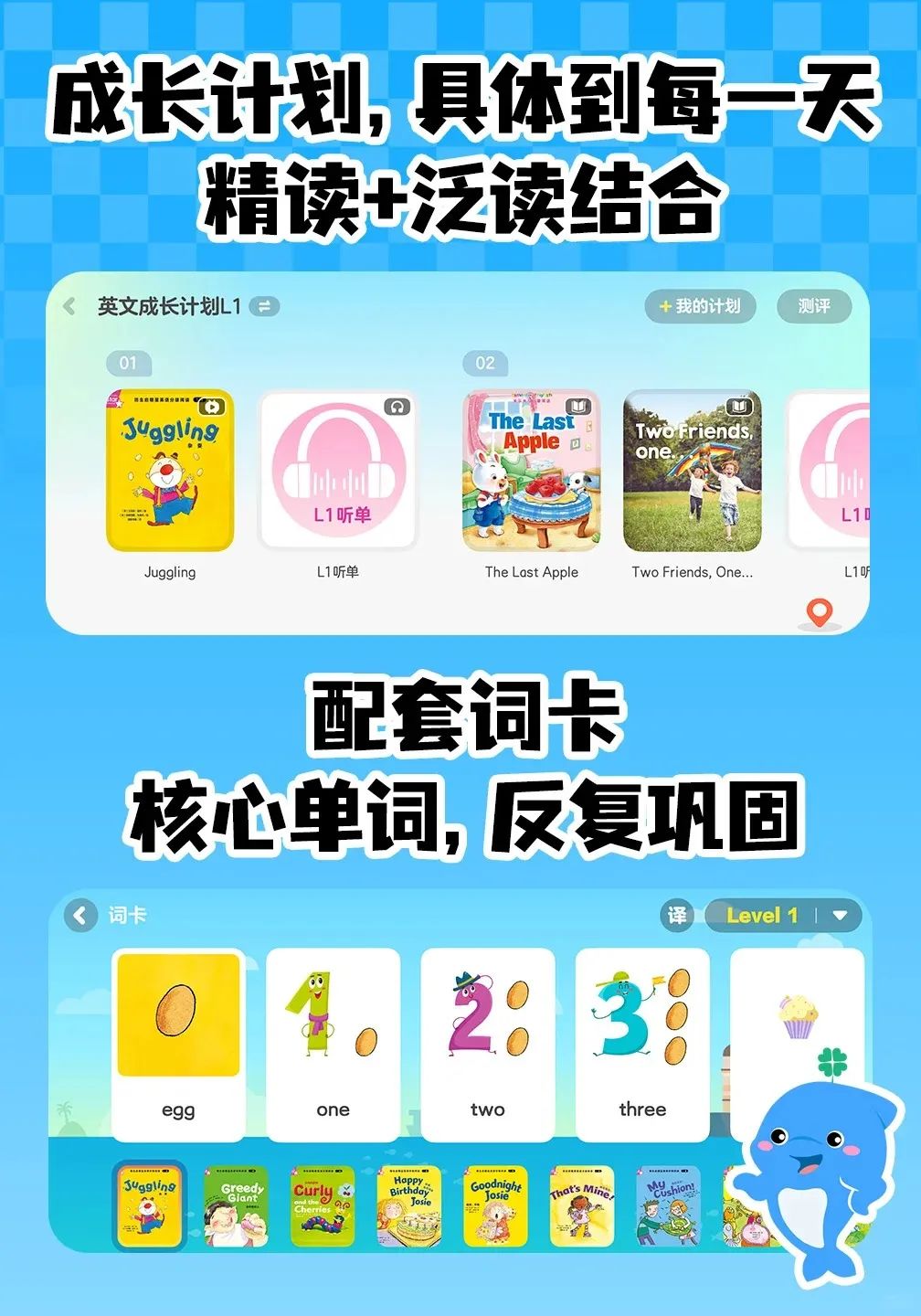 帮助孩子喜欢上英语,轻松升级不脱落,助力孩子达到英国小学3年级阅读水平。同时以阅读为核心,助力孩子单词启蒙、听说积累、阅读理解、日常应用、阅读技巧全方面提升。