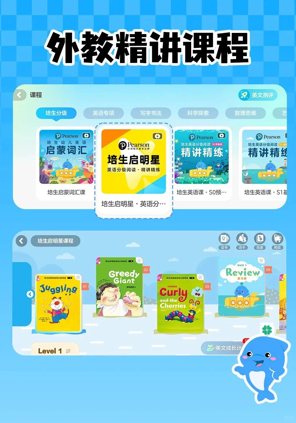 值得一提的是,这次升级,为了帮助孩子将每一个级别都扎实学透,培生启明星还专门将外教精讲课根据各阶段的目标不同,对课程形式也做了区别设计。