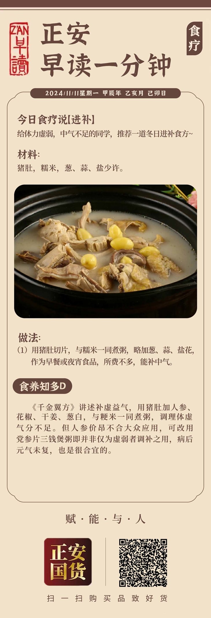 11月11日 应季食方【猪肚糯米粥】补虚益气
