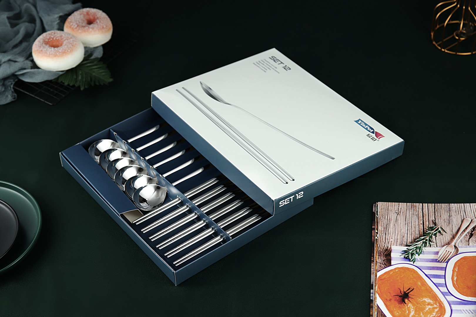 易铂大品牌不锈钢筷勺套装,Set12不锈钢餐具套装(6双筷子,6根汤勺),在材质上,选用食品级304不锈钢,水晶一样的质感餐具,给就餐一个即健康又奢华的体验。