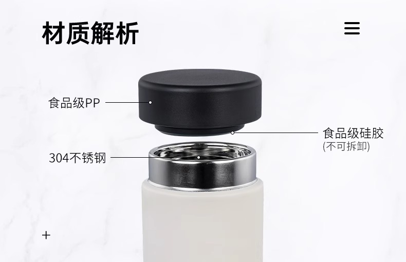 【优点】:采用优质材质,随身直饮保温杯,内胆采用304不锈钢,持久保温,耐腐蚀、耐氧化,健康安全、经久耐用,长效保温