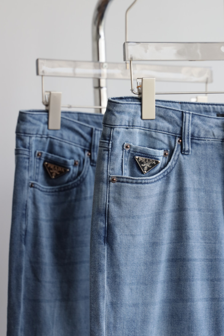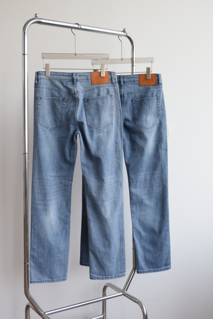 P.R.D 夏季薄款 宽松直筒浅色微弹牛仔裤