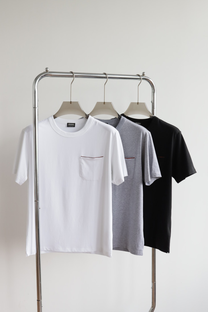 E.Z 杰尼口袋织带拼接液氨弹力短袖T恤