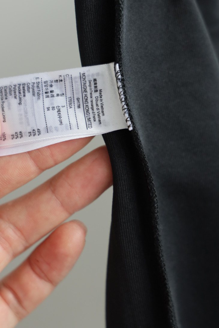 前身、侧边都有logo标志,低调又有辨识度。(长度膝盖附近,两侧有口袋的,方便实用。