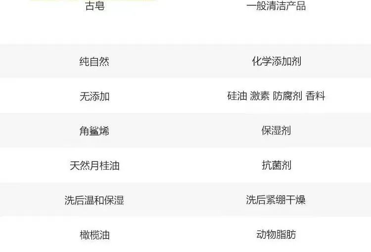 叙利亚古皂一直沿用传统古法,坚持匠心传承,天然成分制作,一直在很多添加剂这块一直保持着“0”的好成绩——0香精,0酒精,0保鲜剂,香精,0色素,0矿物油,不堵塞毛孔,温和柔润不刺激!