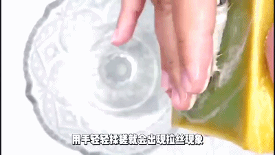 首先将口罩浸泡在水中10~20秒后,用手轻轻揉搓,就会出现拉丝现象。
