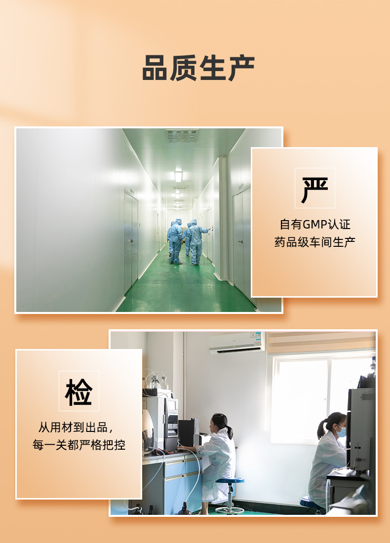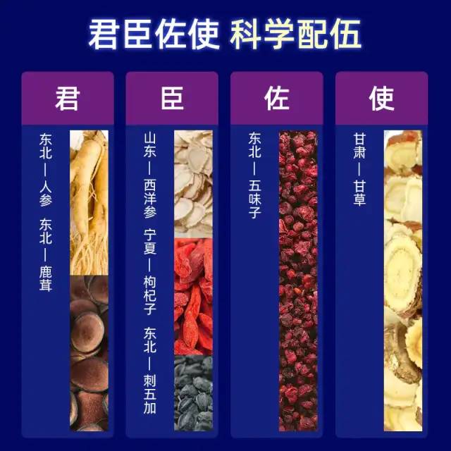 3味珍贵药材,人参、鹿茸、西洋参,选料精良;7种道地药材,全程追踪溯源;18道生产工序完善成熟;240摄氏度的高温杀菌保证品质。