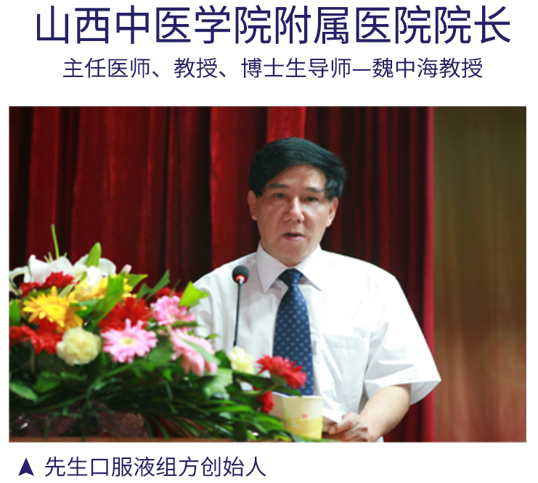 先生口服液由山西中医学院第二中医院(山西中医学院附属医院)院长魏忠海先生所创。具有抗疲劳、改善睡眠、免疫调节的功效,对易疲劳、睡眠状况不佳、免疫力低下等症状有缓解作用。